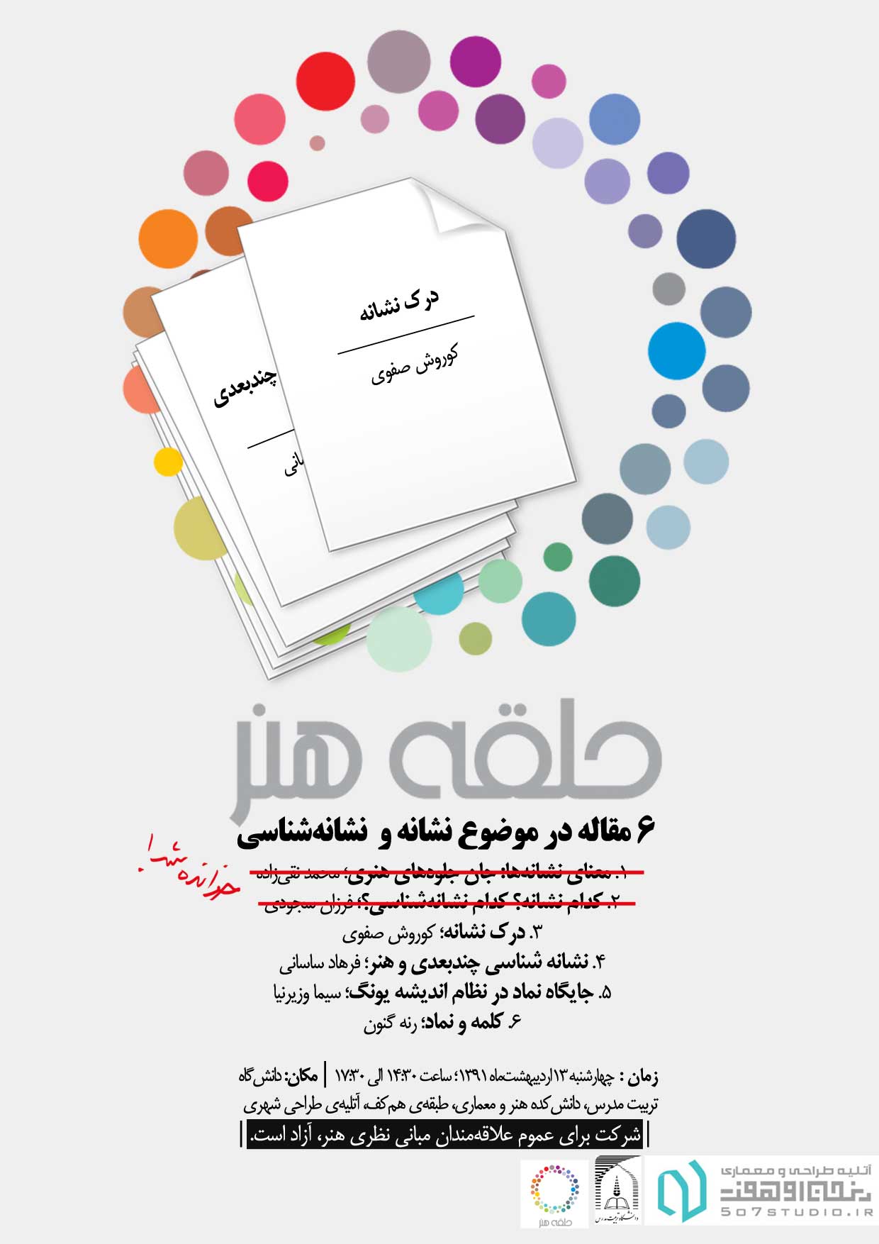 جلسه پنجم حلقه هنر؛ بحث و بررسی پیرامون 4 مقاله در موضوع نشانه و نشانه شناسی