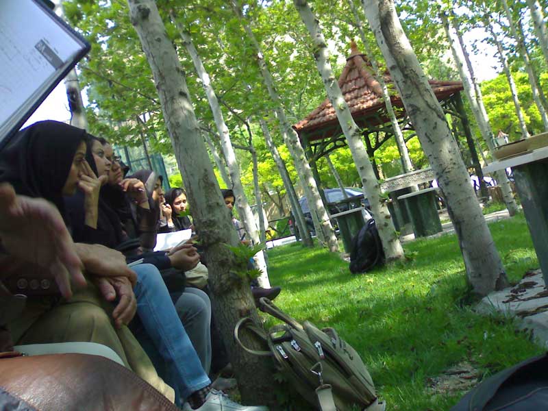 اگرچه ناخواسته رخ داد اما شاید خیر بود! این که هماهنگیهای با دانشگاه تربیت مدرس کامل انجام نشده بود (و البته تقصیر ما بود و شرمنده!) و در همان لحظات آغاز جلسه از ما خواستند آتلیه طراحی شهری دانشکده هنر را ترک کنیم و ما با شرمندگی دوستان را به بیرون از دانشکده هدایت کردیم.